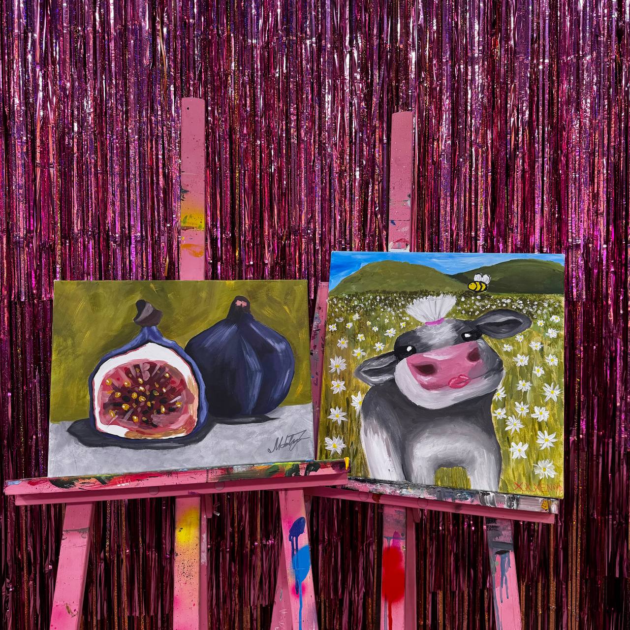 Вы можете нарисовать 2 разные картины или 1 совместную на большом холсте